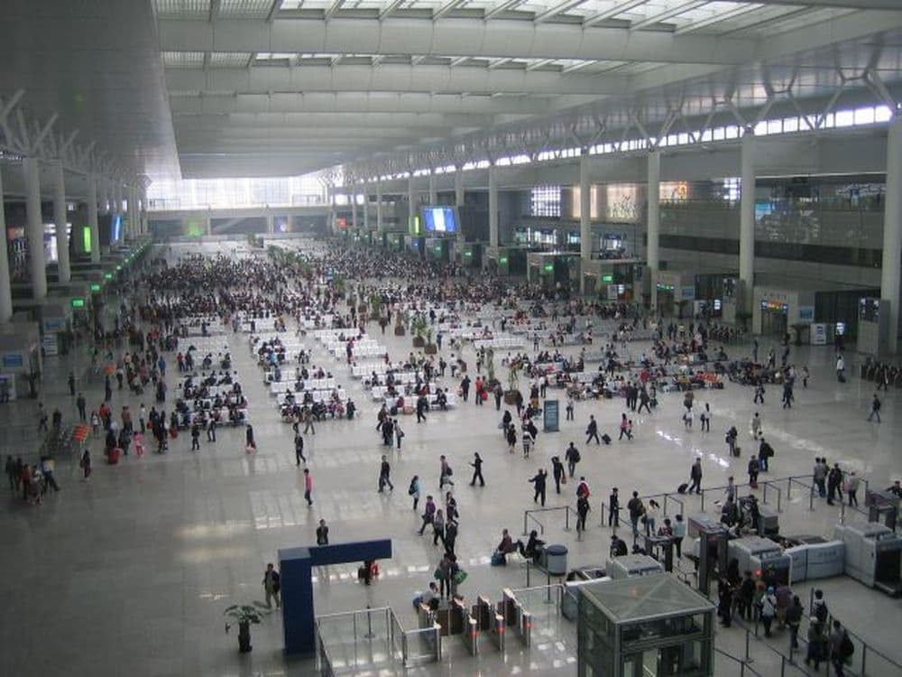 Sie laufen geschäftig wie die Ameisen. Durcheinander, zielstrebig, ohne zusammenzustoßen. Sie drängeln sich durch die Sicherheitskontrolle, schmeißen ihre Taschen auf die Sitzbänke und kauen voller Zufriedenheit getrockneten Fisch und in Plastik eingeschweißtes Entenfleisch. China begeht den Tag der Arbeit mit einem verlängerten Wochenende. Wer in Shanghai wohnt, fährt aufs Land; wer auf dem Land wohnt, fährt nach Shanghai. Stoßbetrieb am brandneuen Hongqiao Bahnhof von Shanghai.