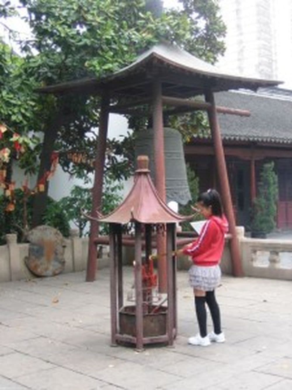 Ein kleines Mädchen nähert sich der Haupthalle des Tempels. Ihre Kniestrümpfe rutschen ein wenig. Der Pferdeschwanz wippt bei jedem Schritt von links nach rechts. In der Hand hält sie einige Räucherstäbchen. Während die Eltern sich unter die Bäume zurückziehen, zündet das Mädchen die Räucherstäbe an. Der Konfuziustempel wird im Frühjahr besonders häufig besucht. Dann finden in ganz China die Mittelschulprüfungen statt. Sie entscheiden, welche weiterführende Schule und welche Universität Chinas Schüler besuchen können. Wer eine gute Schule besuchen kann, dem stehen später alle Wege offen. Wer versagt, der muss sich mit einem schlecht bezahlten Job in einer Fabrik zufrieden geben. Deshalb kommen viele Schüler vor den Prüfungen mit ihren Eltern hierher, um den großen Gelehrten Konfuzius um Beistand zu bitten.