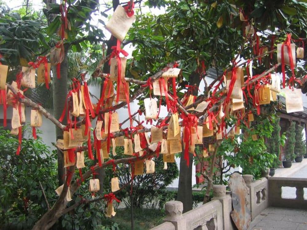 Das Mädchen betritt die Tempelhalle. Sie kniet vor dem Altar nieder und verneigt sich dreimal. Der Vater zündet sich draußen eine Zigarette an. Zwei Touristen verfolgen die Szene neugierig. In den Bäumen hängen unzählige kleine Zettel. Auf der Rückseite ist Konfuzius abgebildet. Auf der Vorderseite stehen die Wünsche von Shanghais Schulkindern: ein guter Schulabschluss, die Englischprüfung bestehen, die berühmte Fudan Universität besuchen können… Auch das kleine Mädchen mit dem Pferdeschwanz schreibt jetzt einen Zettel. Die Mutter schaut ihr über die Schulter. Bloß kein Zeichen falsch schreiben, dafür hätte Konfuzius mit Sicherheit kein Verständnis. Dann sucht die ganze Familie eine freie Stelle. Fast alle erreichbaren Äste in den Bäumen sind schon belegt. Schließlich wird der Vater aktiv. Er steigt auf eine Absperrung. Reckt sich und streckt sich, bis er einen Ast erwischt, an dem nur zwei Zettel hängen. Hier passt der Wunsch des kleinen Mädchens noch dazu. Die Familie strebt dem Ausgang zu. Ein pummeliger Junge wird von seiner Oma in Richtung Tempelhalle gezogen. Auch er wird Räucherstäbchen verbrennen, sich dreimal vor Konfuzius verneigen und dann einen Wunsch in die Bäume hängen. Auch er wird in wenigen Wochen in einem Klassenzimmer eine Prüfung ablegen, die für viele Chinesen, die wichtigste ihres jungen Lebens zu sein scheint.