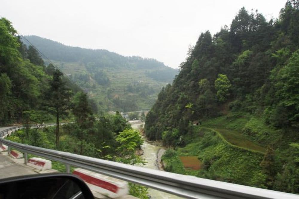 Laster, die auf den kleinen Straßen rangierten, kleinere Erdrutsche und Ähnliches führten dazu, dass wir ständig unter größter Aufmerksamkeit fahren mussten. Viele Einheimische benutzten die Straße auch als Lagerplatz für Kies oder Dachschindeln, da am Berghang anscheinend kein ebener Platz dafür zu finden war. Dementsprechend langsam kamen wir voran. Die Aussicht war allerdings fast durchgehend großartig. Wir blickten in grüne Täler und auf bewaldete Berghänge und einen Großteil des Tages folgten wir dem Lauf eines rauschenden Flusses.