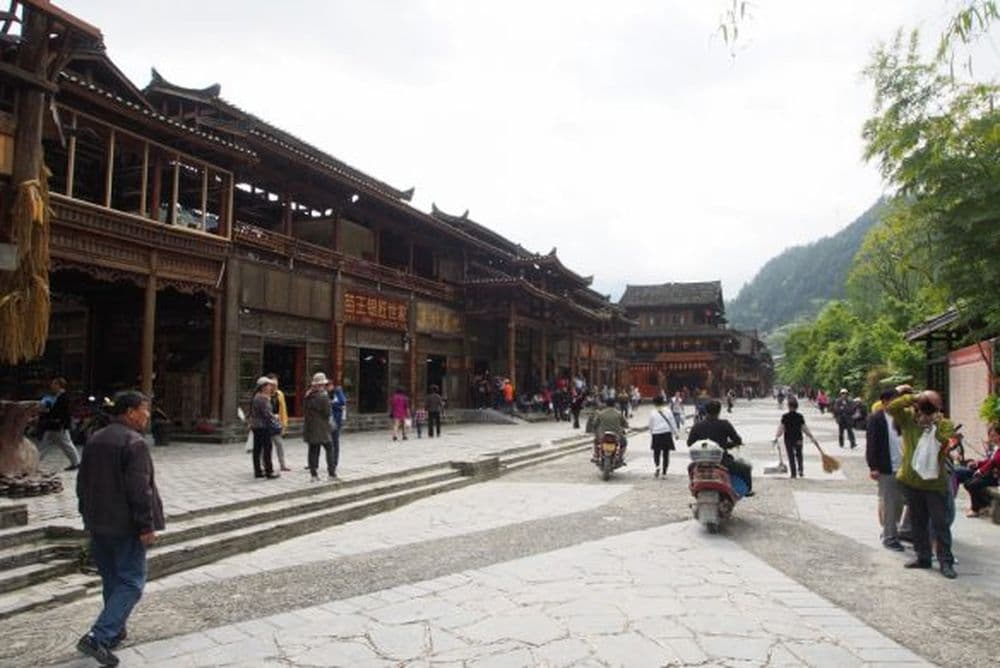 Nach dem Frühstück gönnten wir uns noch einen kurzen Bummel durch das Dorf Xijiang. Wie schon am Huangguoshu Wasserfall schien auch hier die Hauptattraktion zu sein, sich in landestypischen Trachten fotografieren zu lassen. Auf dem zentralen Platz reihte sich ein Kostümverleih an den nächsten. Die Nebengassen wiederum waren voll von kleinen Restaurants und Souvenirläden. Doch auch der Alltag der Bewohner war spürbar. Hier wurde ein neues Haus gebaut, dort ein altes restauriert, immer mit der Hilfe von Lastenpferden, die mit Zementsäcken beladen den Berg hochtrabten. Ein Lkw passt eben nicht in die schmalen Gassen.