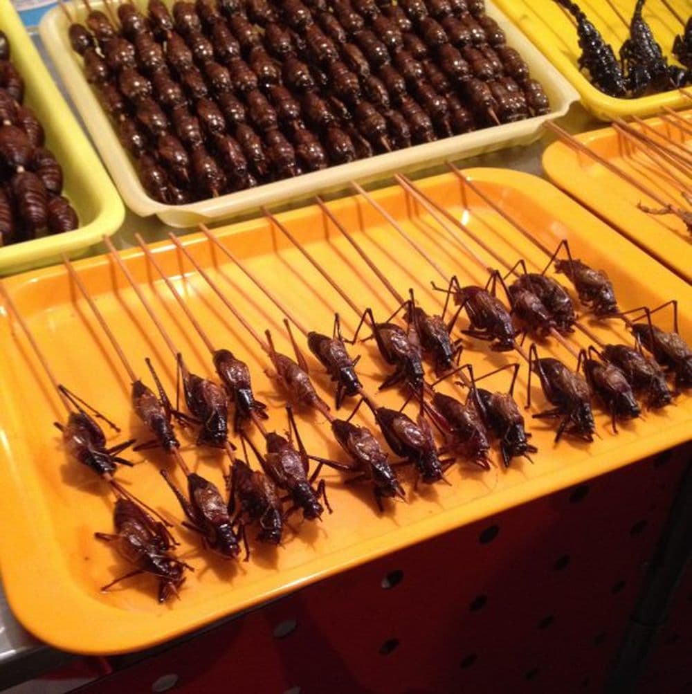 In der Luft lag jedoch ein eigenwilliger Geruch, der für so manchen recht unangenehm sein kann. Er stammt von den exotischen Speisen, für die die meisten Touristen hierher kommen: Der perfekte Ort, um sich Insekten — also unter anderem Kakerlaken, Tausendfüßler und Käfer — frittiert an Spießen zu kaufen.