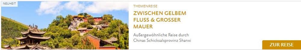 Regionalreise in die Geschichte und Kultur der historisch bedeutsamen Provinz Shanxi Meisterwerke der chinesischen Kunst wie die gigantischen Yungang-Grotten oder das Hängende Kloster von Datong entdecken Sie auf der Reise „Zwischen Gelbem Fluss und Großer Mauer“ durch die geschichtsträchtige Schicksalsprovinz Shanxi.
