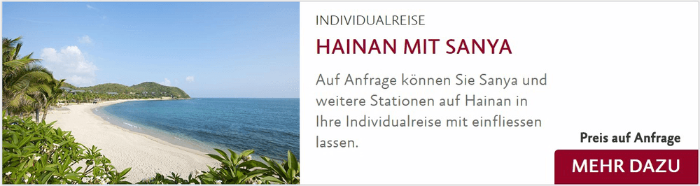 Um der Hitze auszuweichen sucht man selbstverständlich auch in China Plätze mit viel Schatten auf. In China sind das häufig Parks, von denen es viele gibt. Oder man begibt sich in eines der öffentlichen Bäder des Landes. Bevorzugt man Sand zwischen den Zehen und den salzigen Geschmack des Meerwassers, geht man an die Badestrände an den Küsten oder auf die Insel Hainan in Südchina. Die Insel ist in den letzten 10 Jahren bei in- und ausländischen Gästen gleichermaßen zu einem beliebten Badeurlaubsziel geworden. Viele Chinesen verbringen Ihre Flitterwochen auf Hainan. Besonders beliebt ist hierzu die Region um die Stadt Sanya.